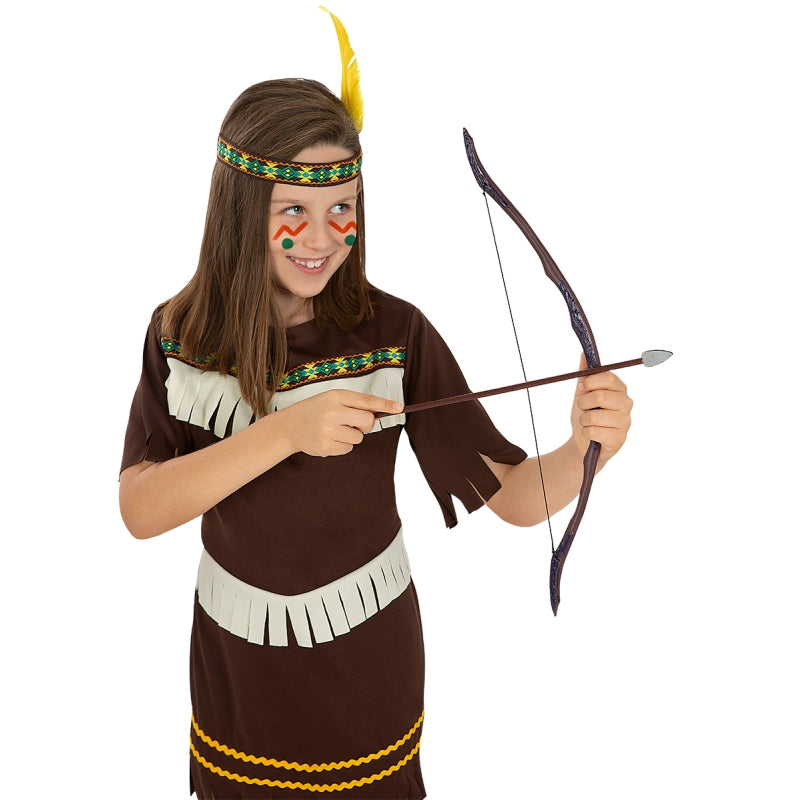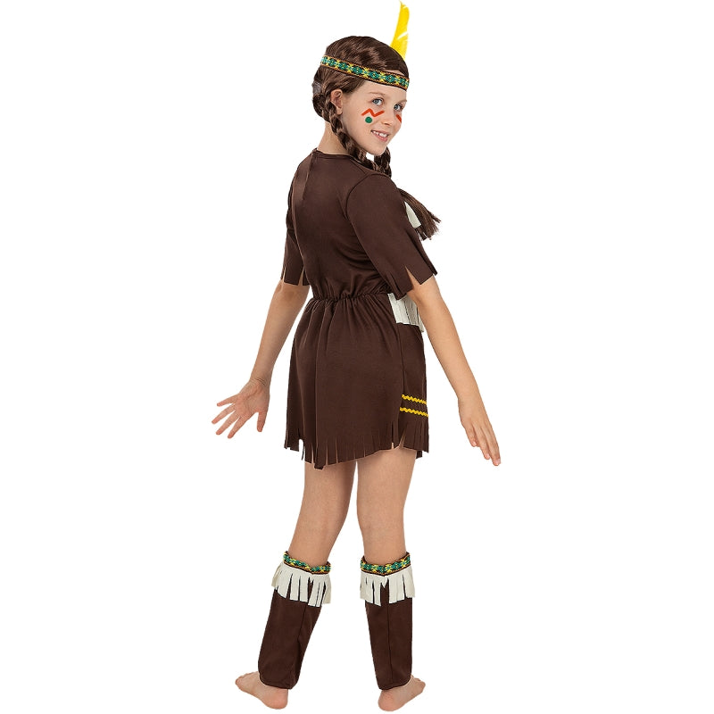 Le costume original Indienne Traditionnelle pour filles comprenant : Robe, serre-tête avec plume et jambières | Cette tenue fille imitant une Indienne native traditionnelle est disponible en 4 tailles différentes