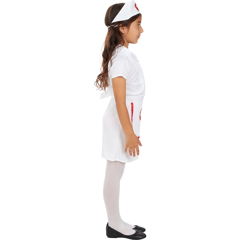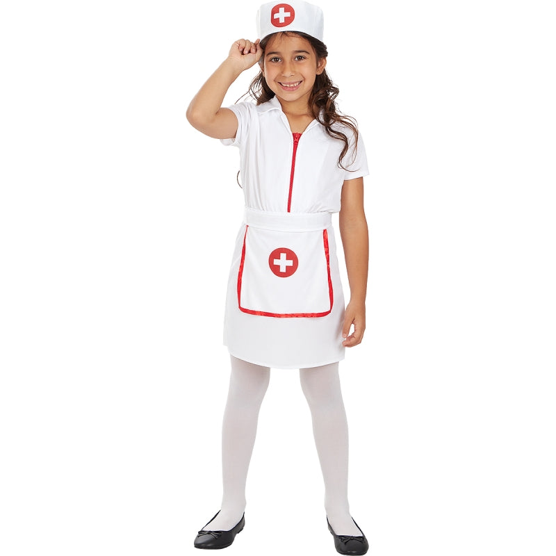 Le costume original Infirmière pour filles comprenant : Robe, tablier et coiffe | Cette tenue fille imitant une Petite infirmière en uniforme est disponible en 4 tailles différentes