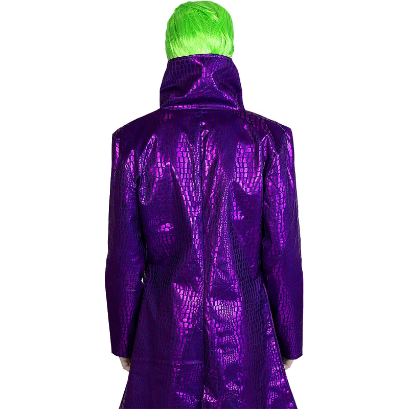 Ce costume exclusif de Joker de Suicide Squad pour hommes contient : T-shirt imprimé, trench-coat | Ce déguisement d'homme imitant prince du chaos au style punk criminel est disponible en 2 tailles différentes et veuillez noter que cela n'est pas inclus : perruque, chaînes, pantalon, maquillage