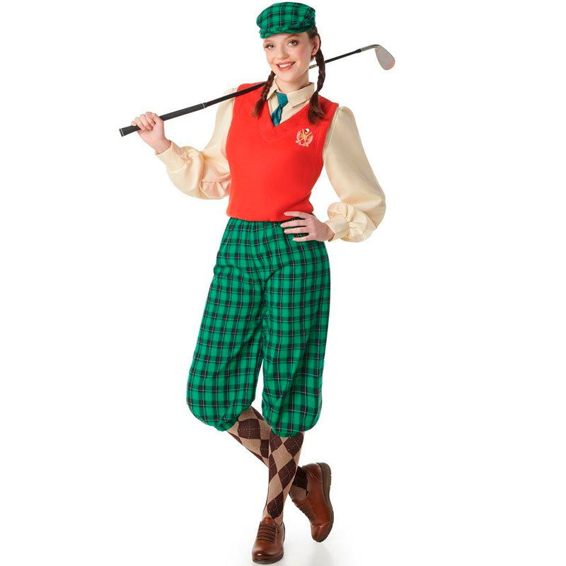 Le costume original de Joueuse de Golf pour femmes contient : casquette, chemise, cravate, gilet et pantalon | Cette tenue femme imitant golfiste féminine est disponible en 4 tailles différentes