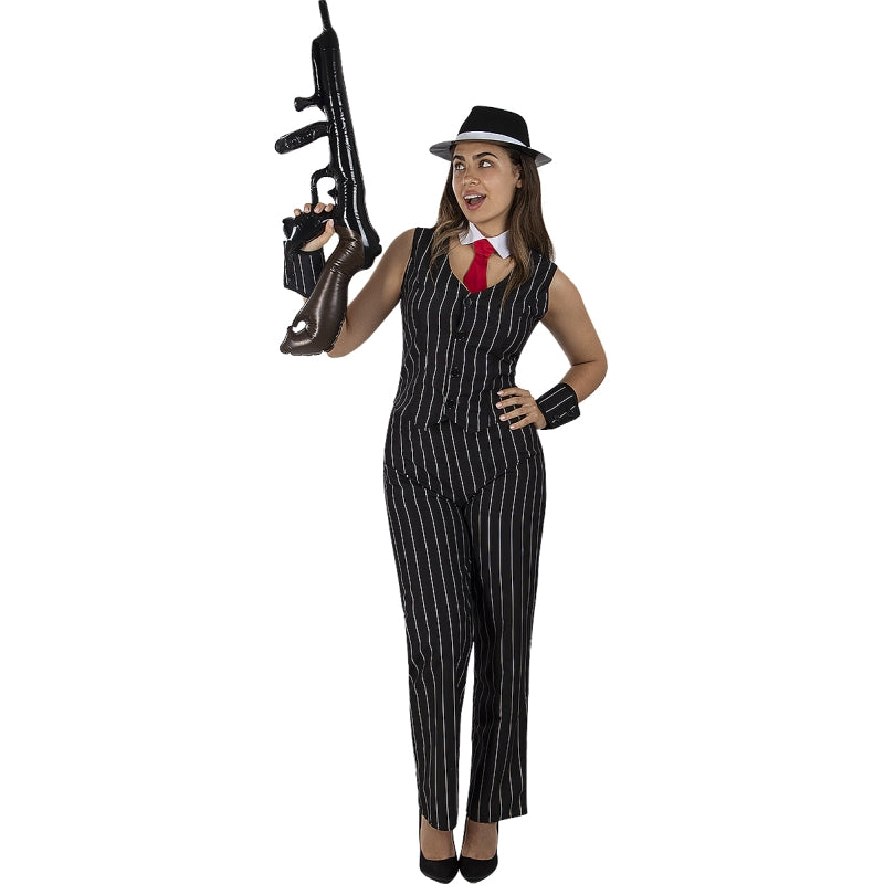 Ce costume exclusif de Mafieuse pour femmes contient : Pantalon, gilet, poignets et col avec cravate | Ce déguisement de femme pour se transformer en cheffe élégante d’affaires clandestines est disponible en 5 tailles différentes