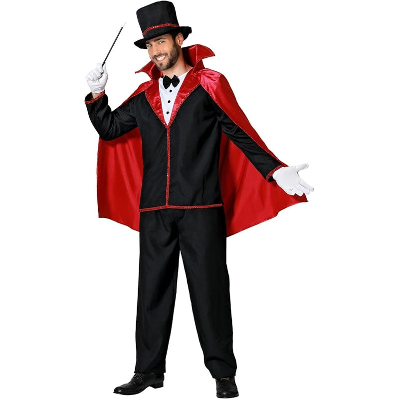 Le costume original Magicien charmant pour hommes contient : pantalon, chemise, cape et chapeau | Cette tenue adulte imitant magicien pop est disponible en 3 tailles différentes