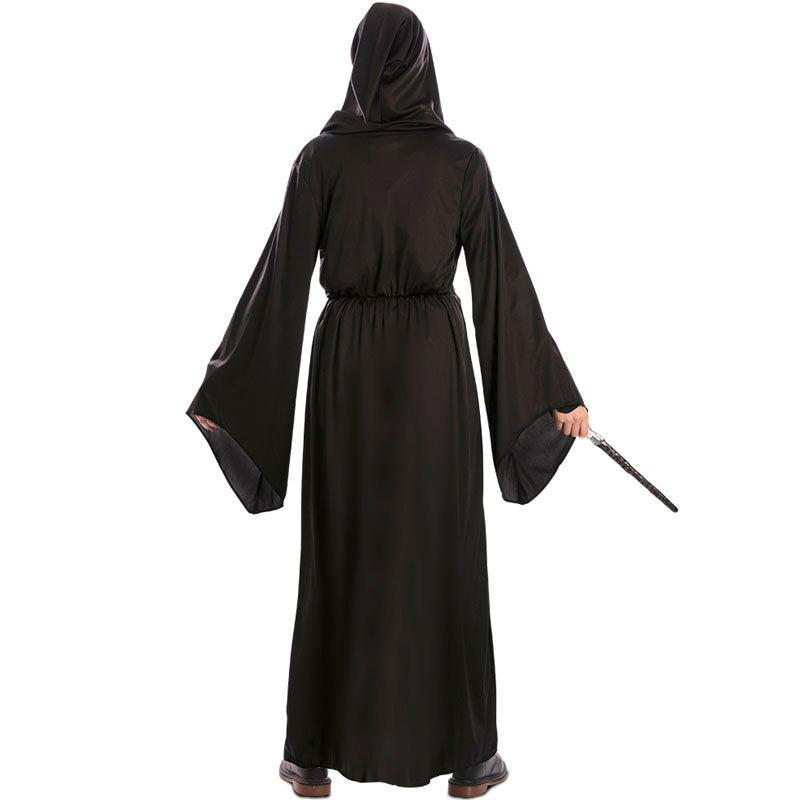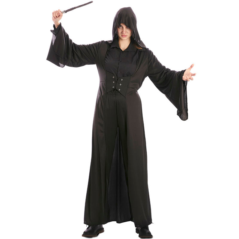 Vous cherchez une idée originale de déguisement pour Halloween ? Ce déguisement de Mangemort pour femme vous transformera en sorcière noire digne de l’univers de Harry Potter. Avec une longue robe noire à capuche, disponible en taille adulte, ce déguisement de fidèle de Voldemort est idéal pour marquer les esprits lors de toute fête effrayante. Il fait partie de notre collection de déguisements d’Halloween pour femme et séduit par son style mystérieux, magique et sombre. Parfait pour sortir des sentiers battus et incarner un personnage charismatique. Complétez votre look avec du maquillage effrayant et des accessoires sinistres pour un costume de sorcière noire à la hauteur. Ce costume de Mangemort pour femme a tout pour une nuit d’Halloween inoubliable.