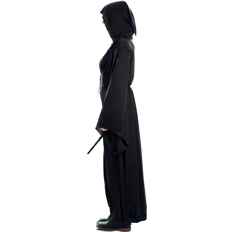 Le déguisement Halloween de Mangemort pour femme comprend : robe à capuche | Ce costume effrayant de femme pour incarner une fidèle de Voldemort est disponible en taille unique