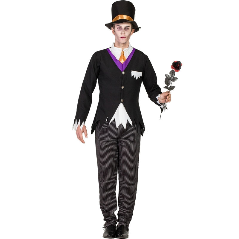 Transformez-vous en un Marié cadavérique effrayant en un rien de temps grâce à ce nouveau costume d'Halloween pour hommes. Ne manquez pas l'occasion de vous déguiser en Marié fantôme avec cette tenue d'Halloween pour hommes en taille adulte qui contient chapeau, veste avec col et cravate et pantalon et est disponible en 2 tailles. Ce nouveau déguisement Marié zombie pour homme est idéal pour effrayer tout le monde lors de votre prochaine soirée d'horreur. Il fait partie de notre vaste catalogue de costumes Halloween pour homme.
