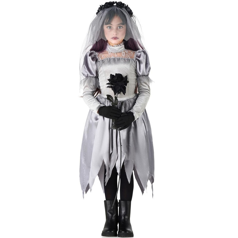 Dans notre catalogue de costumes d'Halloween terrifiants nous venons d'ajouter un nouveau costume d'horreur pour filles avec lequel vous pouvez transformer votre fille en une Mariée cadavérique grise terrifiante rapidement en utilisant cette tenue d'Halloween pour filles. Ne manquez pas l'occasion de l'habiller en mariée zombie avec ce déguisement d'Halloween pour filles qui contient robe et diadème et est disponible en 4 tailles Ce nouveau déguisement mariée décédée fille est idéal pour effrayer tout le monde lors de sa prochaine fête costumée effrayante, d'un défilé terrifiant à l'école, d'une promenade en quête de bonbons... et fait partie de notre vaste sélection de costumes d'Halloween pour filles. Achetez cet original costume Mariée cadavérique grise pour fille d'Halloween pour la transformer lors de la soirée la plus sombre de l'année et vous vous assurerez que votre fille s'amuse comme une folle. N'oubliez pas de finir votre costume Mariée cadavérique grise pour fille avec un maquillage effrayant correspondant à votre personnage et ajoutez des accessoires d'Halloween pour personnaliser au maximum son look d'horreur.