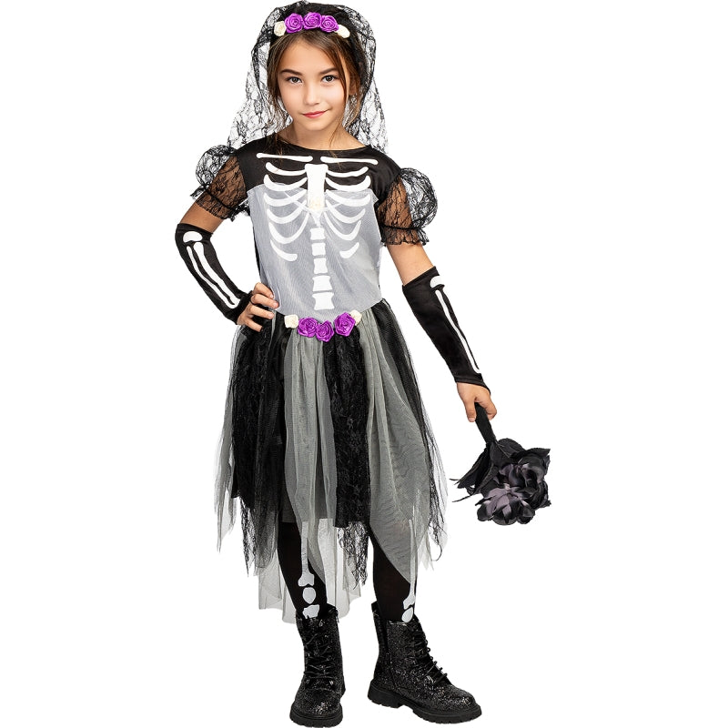 Faites voler l'imagination de votre fille et faites de chaque Halloween une légende. Le déguisement Mariée Squelette avec Dentelle pour Fille est bien plus qu'un costume : c'est la clé d'une nuit pleine d'histoires magiques, d'aventures effrayantes et de souvenirs inoubliables.