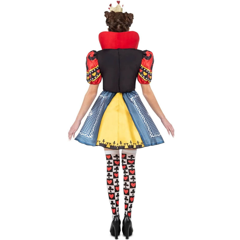 Le costume original de Monarque des cœurs pour femmes contient : Bandeau avec couronne, robe et bas | Cette tenue femme imitant Reine du jeu avec un mauvais caractère est disponible en 4 tailles différentes