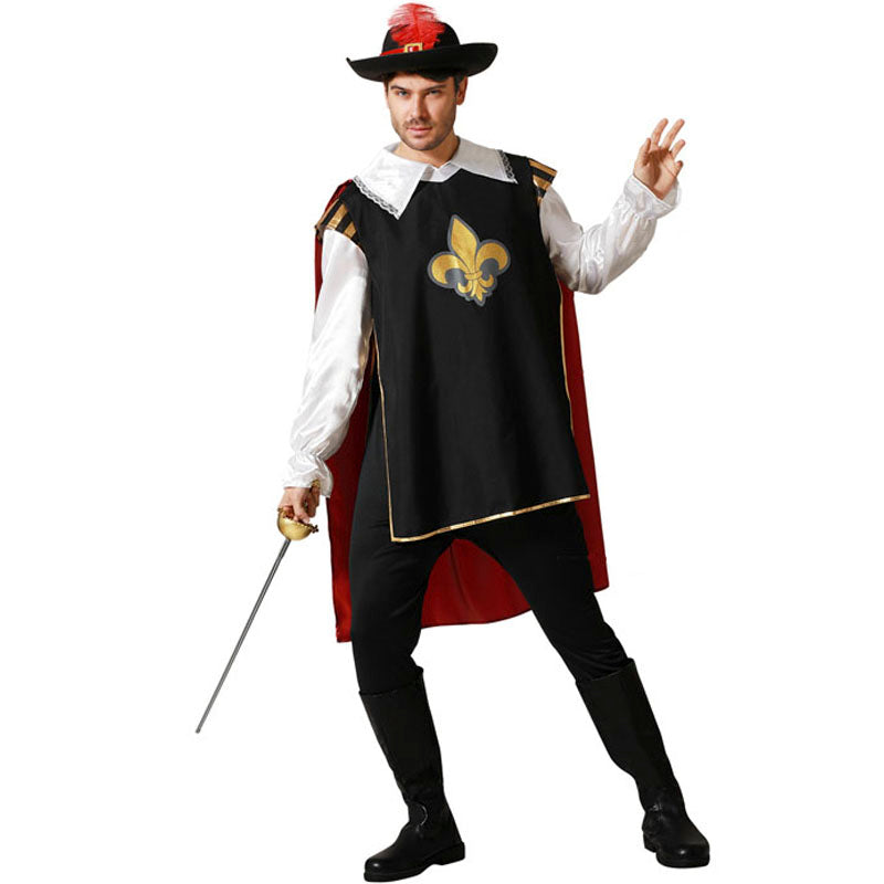 L’ensemble comprend un t-shirt, un pantalon et une cape aux tons sombres, avec des détails inspirés des esthétiques des escrimeurs du XVIIe siècle. Il n’inclut pas de chapeau ni d’épée, ce qui vous permet de l’accessoiriser à votre goût. Disponible en 4 tailles, il garantit un ajustement confortable et flatteur quelle que soit votre morphologie.
