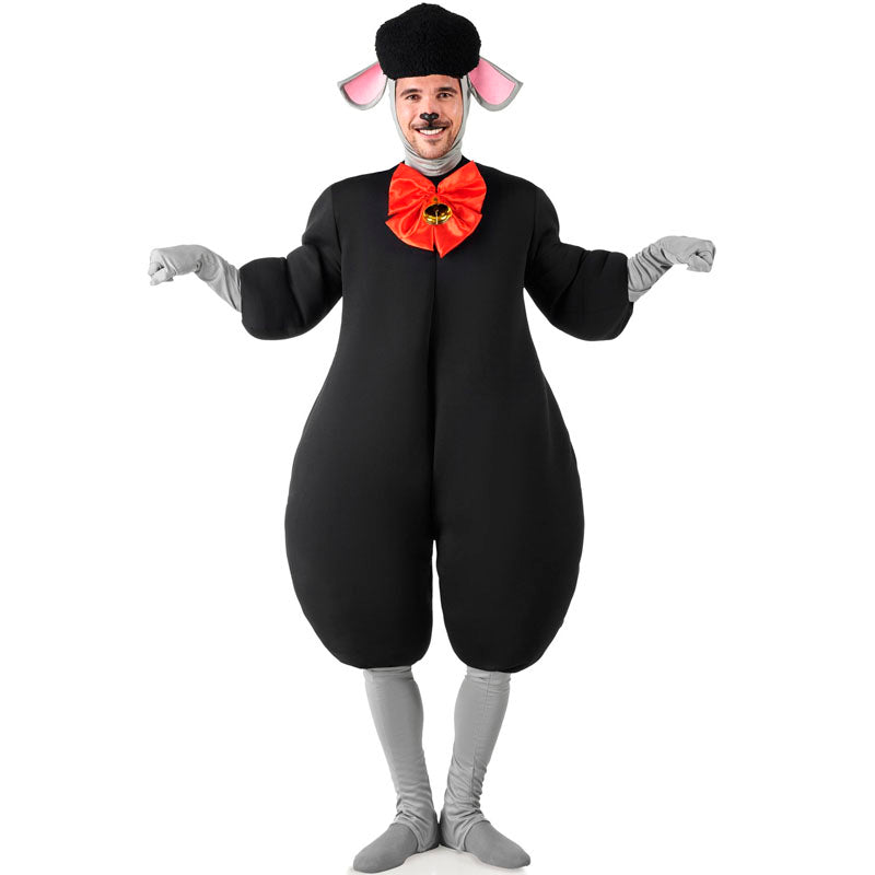 Le costume original Mouton noir pour hommes contient : capuche, corps avec rembourrage, gants et jambières. | Cette tenue adulte imitant mouton noir particulier est disponible en taille unique