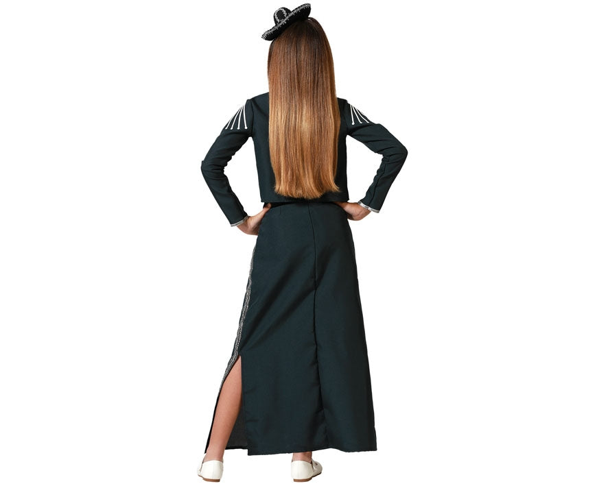 Le costume original Musicienne mariachi pour filles comprenant : veste, chemise, ceinture et jupe longue | Cette tenue fille imitant une mariachi traditionnelle est disponible en 4 tailles différentes