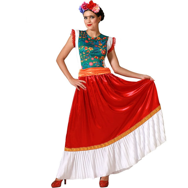 Le costume original de Peintre mexicaine pour femmes contient : robe et ceinture | Cette tenue femme imitant Frida Khalo est disponible en 4 tailles différentes