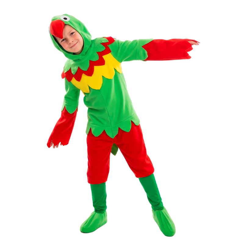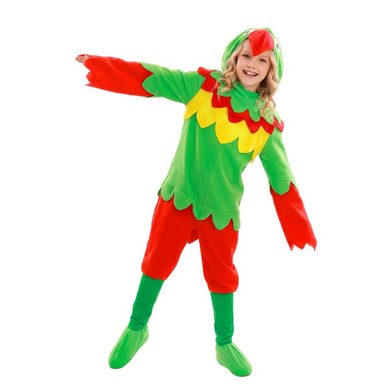 Le costume original pour garçons et filles de Perroquet comprend : Combinaison avec capuche, couvre-chaussures | Ce costume pour enfants imitant Perroquet Sauvage est disponible dans 4 tailles différentes