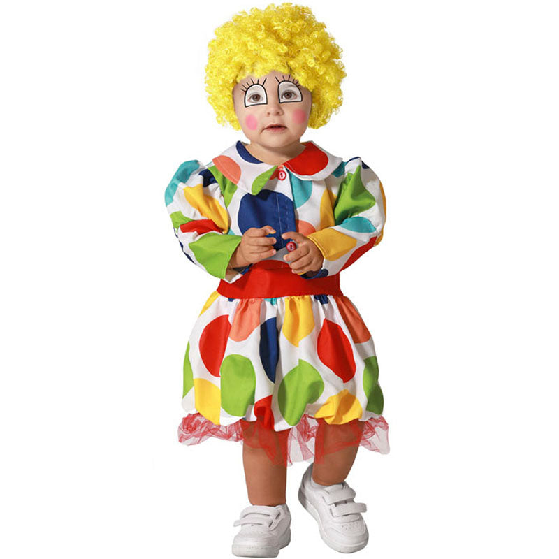 Ce costume de Clown à pois pour bébé comprend une robe colorée débordant de joie, parfaite pour Carnaval, Halloween ou une séance photo en famille. Perruque non incluse. Disponible en 3 tailles pour s'adapter confortablement dès les premiers mois. Réalisé sous contrôles spécifiques pour garantir son usage sécurisé pour les bébés, il est aussi joli que sûr.