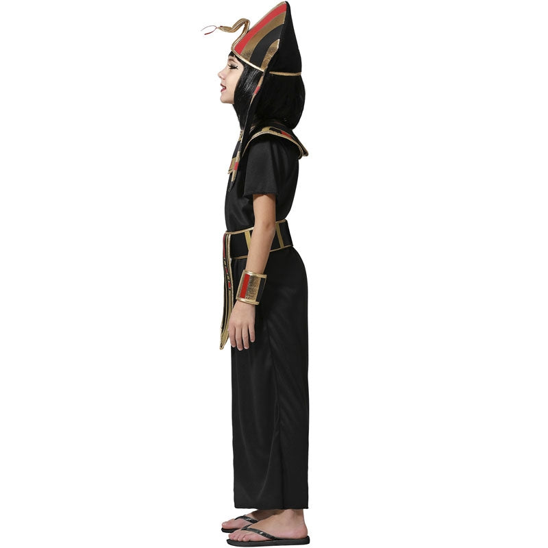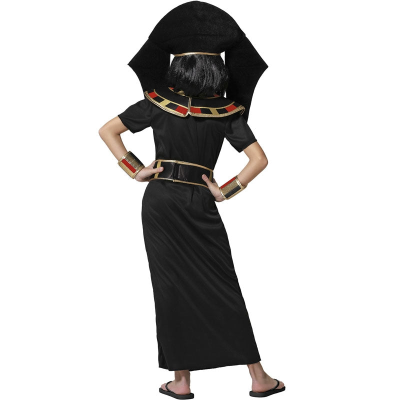 Le costume original Pharaonne noire et dorée pour filles comprenant : coiffe, robe, ceinture et bracelets | Cette tenue fille imitant une pharaonne d'Égypte est disponible en 4 tailles différentes