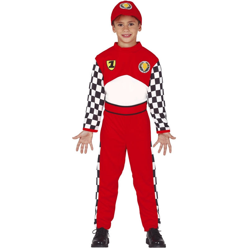 Le costume enfant imitant un pilote de courses pour garçons contient: combinaison, ceinture et coiffe | Ce déguisement garçon pilote de courses est disponible en 3 tailles différentes