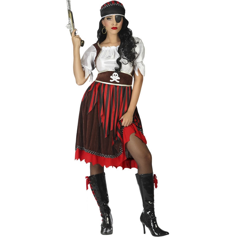 Profitez cette nouveauté pour femme, costume Pirate à rayures. Un déguisement Carnaval parfait pour plusieurs évènements. Le déguisement adulte Pirate à rayures compte avec: Robe, ceinture et bandeau. Faites votre commande depuis chez vous et recevez-la en quelques jours.