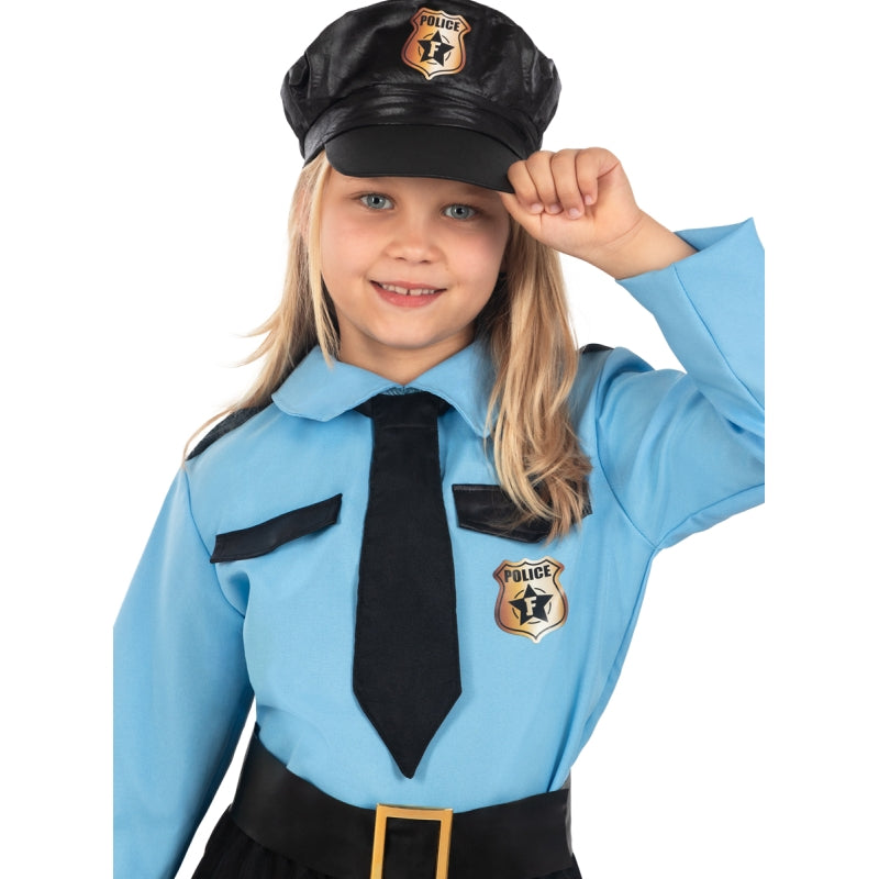 Le costume original Policière Américaine pour filles comprenant : Jupe, t-shirt, casquette, cravate et ceinture | Cette tenue fille imitant une Policière américaine est disponible en 4 tailles différentes