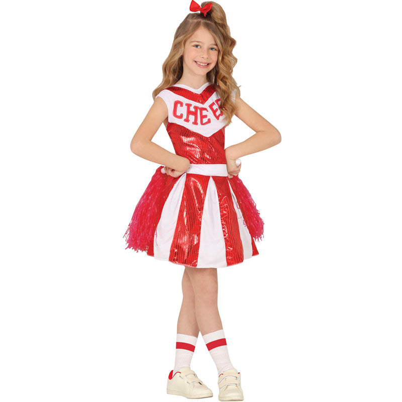 Le costume original Pom-pom girl à paillettes rouges pour filles comprenant : robe | Cette tenue fille imitant une cheerleader aux reflets festifs est disponible en 4 tailles différentes