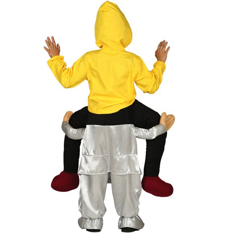 Costume porte moi Halloween Clown It Ride On pour enfant qui donnera l'impression d'être sur le dos de quelqu'un. Une façon terrifiante de s'habiller qui comprend des pantalons en forme de clown Pennywise, les jambes pendantes et l’imperméable.