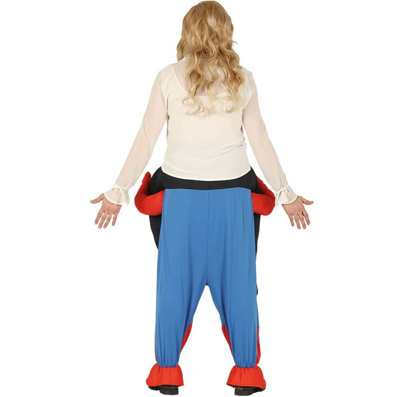 Déguisement original Superman Carry Me, qui donne l’impression et même l’effet optique d’être sur les épaules du héros Superman comprenant le pantalon du superhéros et les fausses jambes.