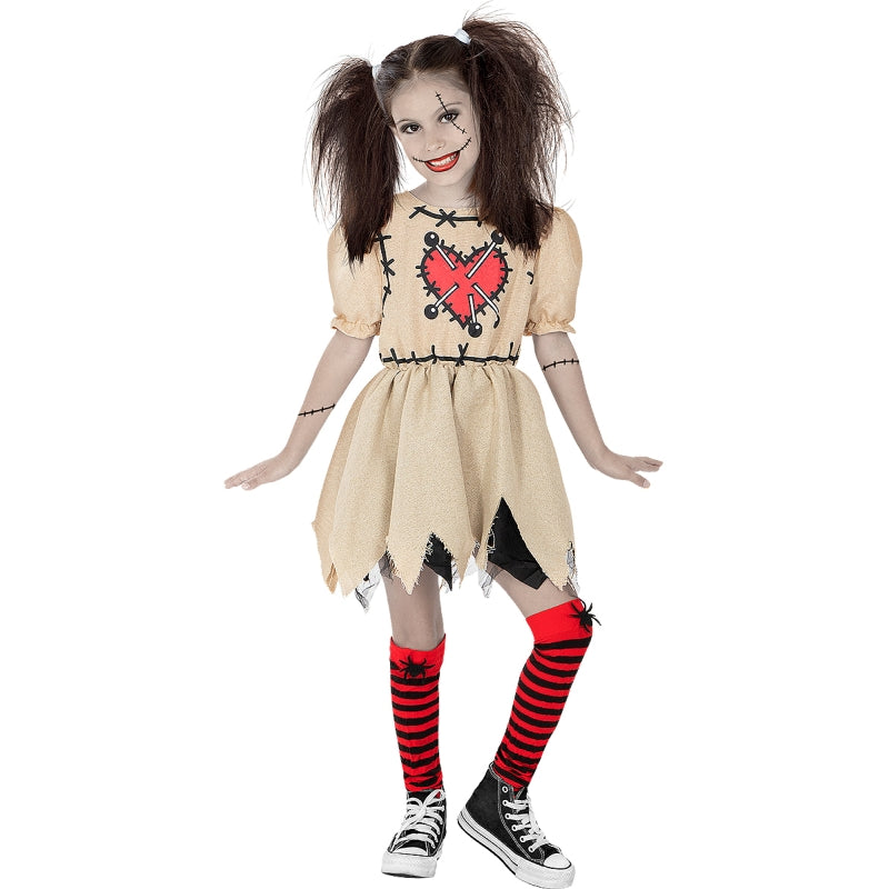 Le costume original Poupée Rituel Vaudou pour filles comprenant : Robe | Cette tenue fille imitant une Poupée vaudou rituelle macabre est disponible en 4 tailles différentes
