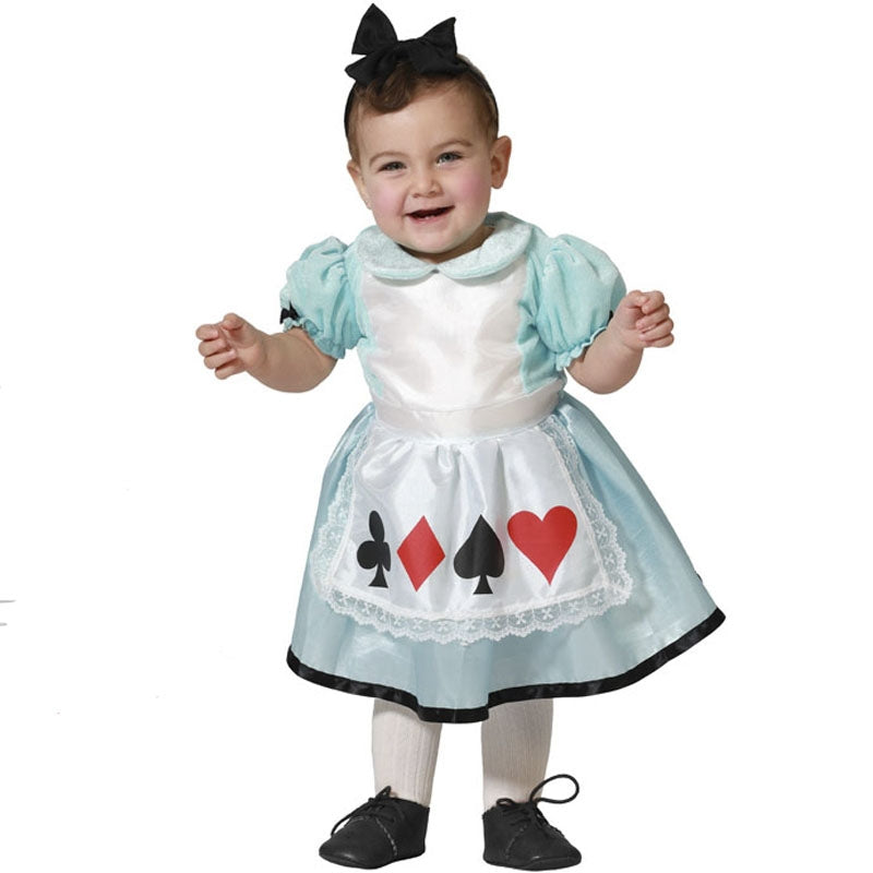 Le costume original Princesse des merveilles pour bébés contient : robe et bandeau | Cette tenue bébé imitant Alice, du conte de Lewis Carroll est disponible en 2 tailles différentes
