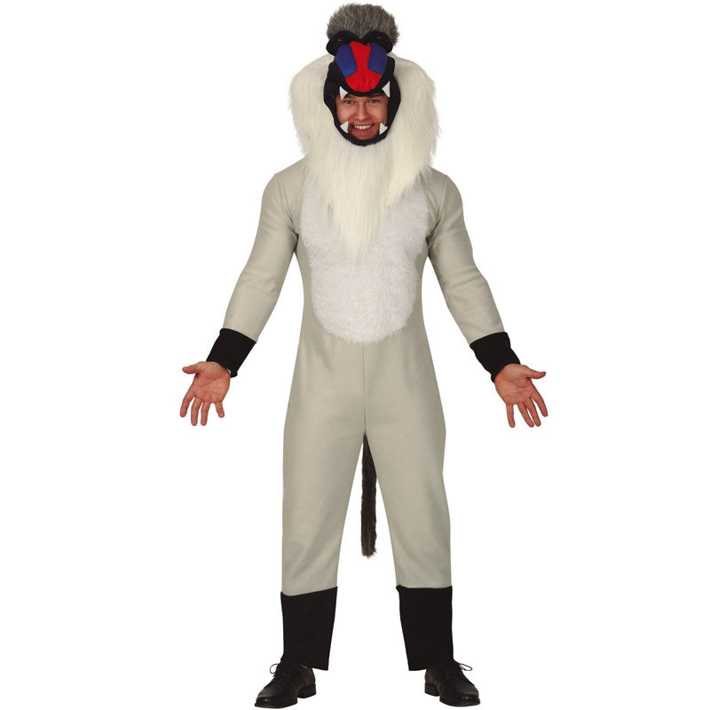 Le costume adulte imitant le mandrill Rafiki contient : combinaison et coiffe | Ce déguisement Rafiki adulte est disponible en 2 tailles différentes