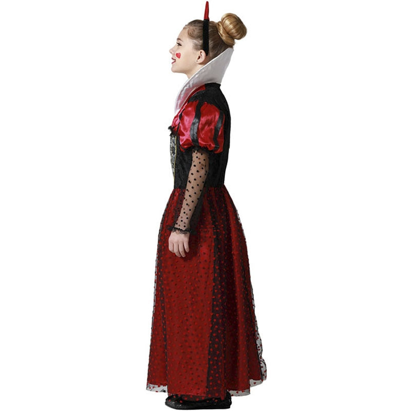 Le costume original Reine de Coeur élégante pour filles comprenant : robe et diadème | Cette tenue fille imitant une Reine de Cœur du conte d'Alice est disponible en 4 tailles différentes