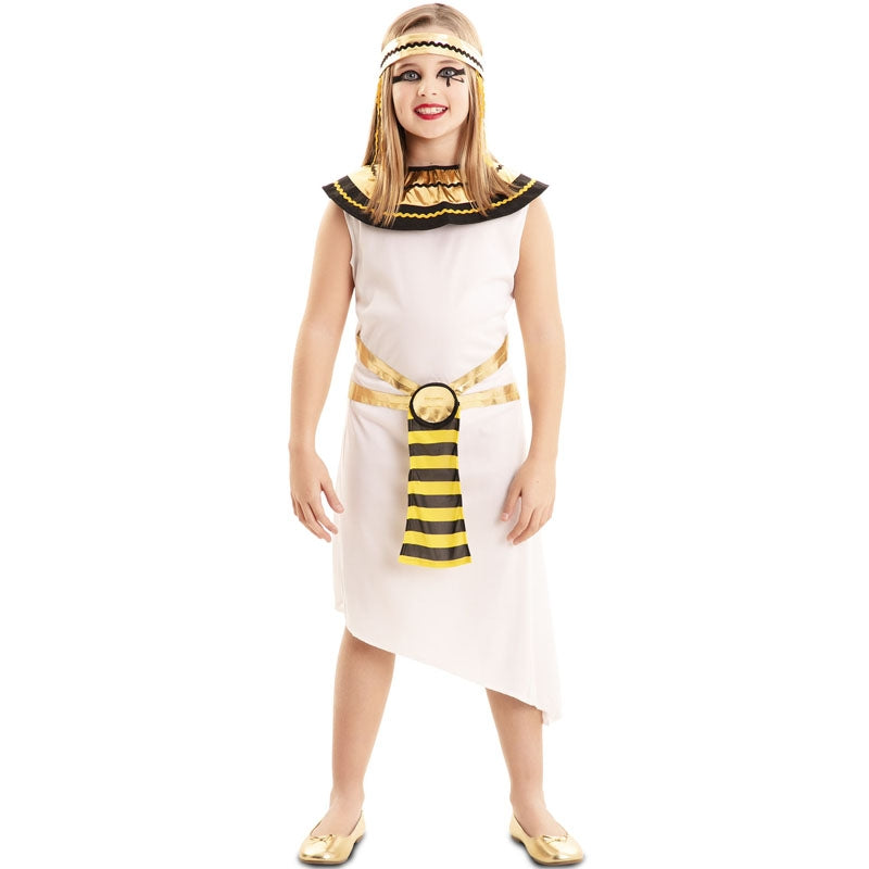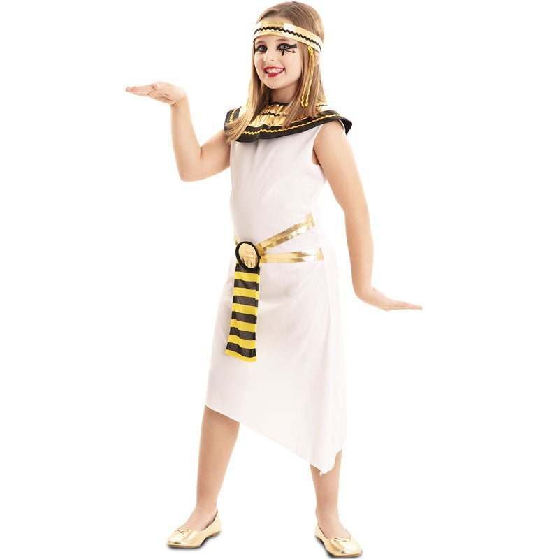 L'élégant costume enfant imitant une reine égyptienne pour filles comprend : Tunique, collier et bandeau | Ce déguisement de reine égyptienne est disponible en 4 tailles différentes