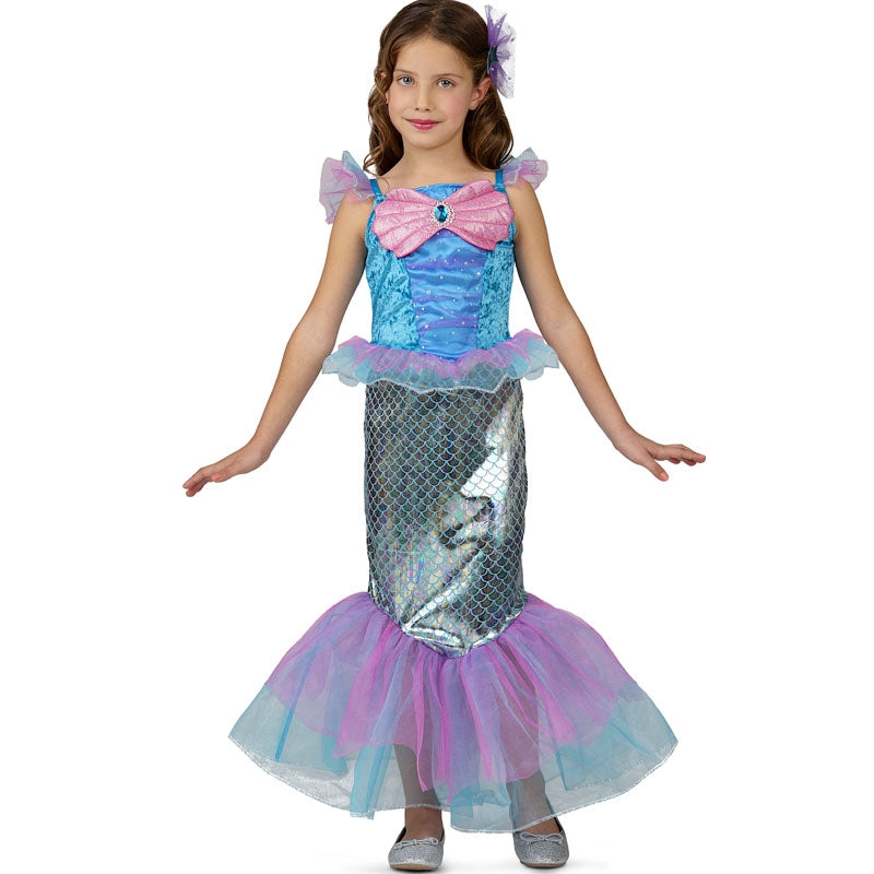 Le costume original reine des sirènes pour filles comprenant : robe et coiffe | Cette tenue fille imitant une reine des sirènes est disponible en 3 tailles différentes