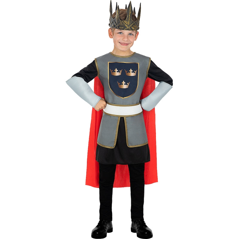 Le costume exclusif de Roi Arthur classique pour enfants comprend : Tunique avec cape, ceinture, bracelets et couronne | Ce tenue d'enfant imitant Roi Arthur médiéval classique est disponible en 4 tailles différentes.