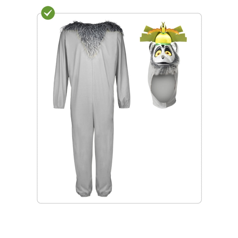 Ce costume exclusif de Roi Julien de Madagascar pour hommes contient : Combinaison et pièce pour la tête | Ce déguisement d'homme imitant Lémur fêtard et excentrique de la jungle animée est disponible en 3 tailles différentes