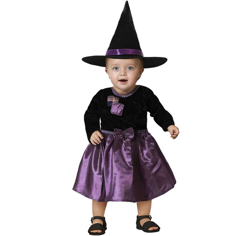 Le costume Halloween Sorcière de Salem pour bébés contient : robe et chapeau | Cette tenue bébé horrifiante imitant un Sorcière du village de Salem est disponible en 3 tailles différentes