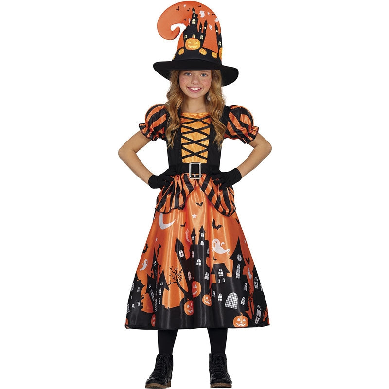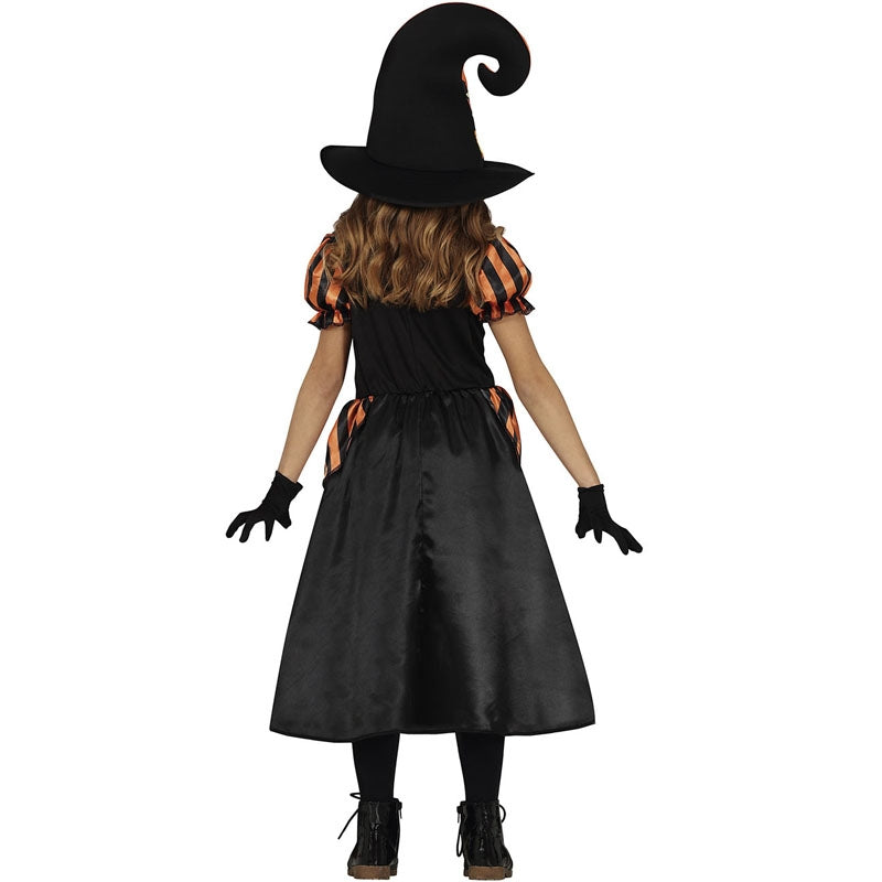 Le costume Halloween Sorcière Ortiz pour filles contient: robe avec ceinture et chapeau | Cette tenue effrayante fille imitant une jolie sorcière est disponible en 4 tailles différentes
