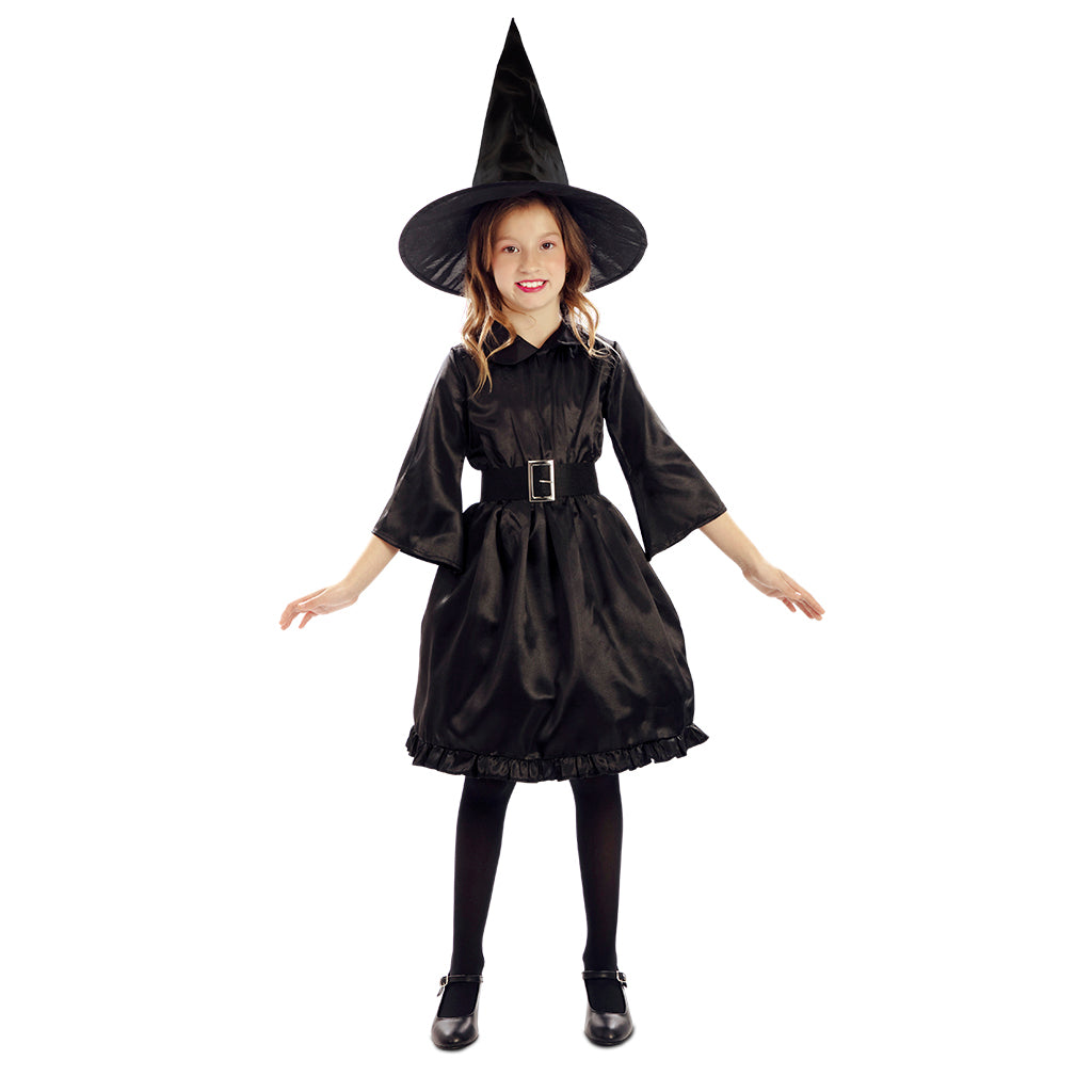 Le costume Halloween Sorcière Perticara pour filles contient: Robe, chapeau | Cette tenue effrayante fille imitant une Sorcière Classique est disponible en 2 tailles différentes