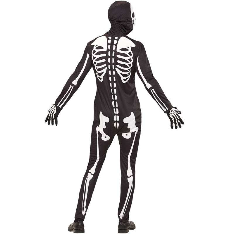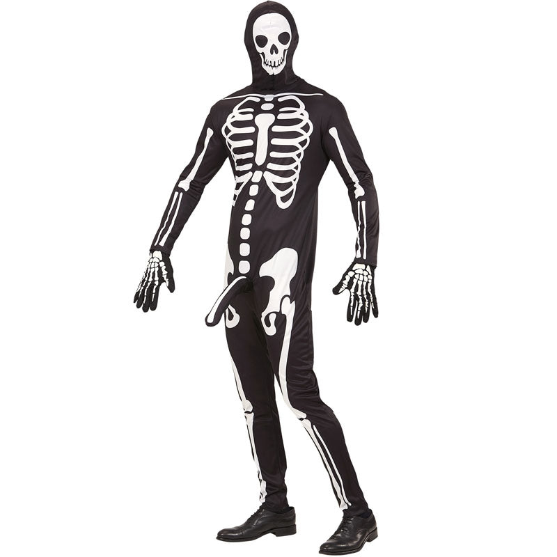 Le costume original Squelette comique pour hommes contient : combinaison, gants et capuche | Cette tenue adulte imitant squelette grivois est disponible en 3 tailles différentes