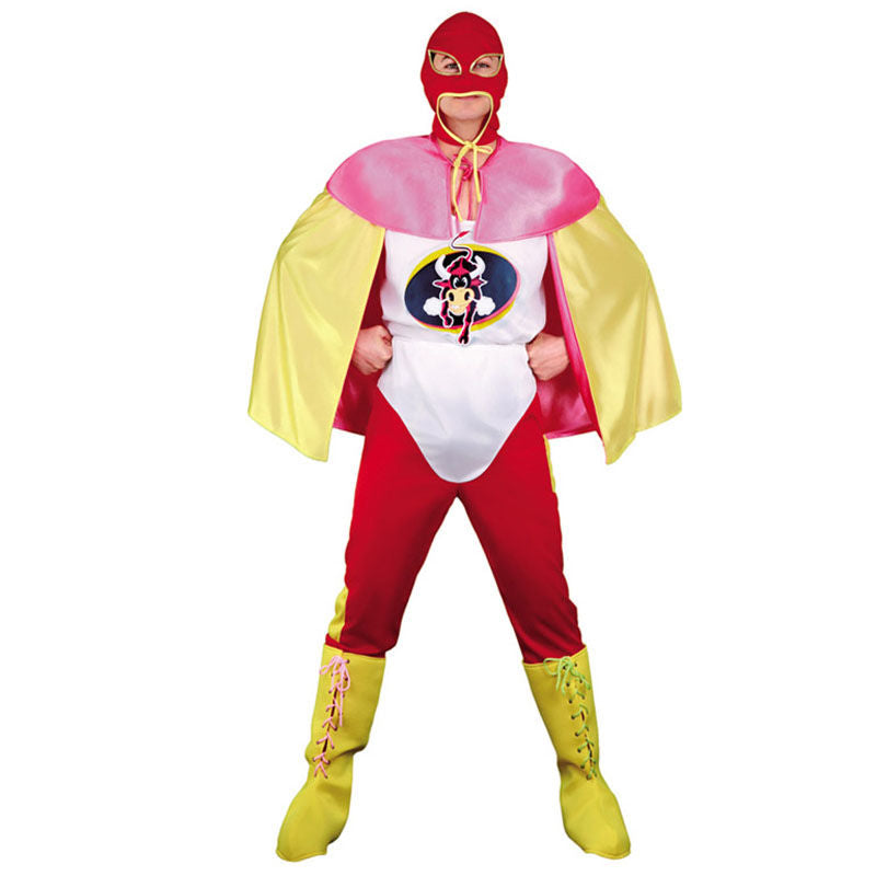 Le costume pour homme superhéros Espagnol contient: Chemise, pantalon, paire de surbottes, cagoule, cape et slip.