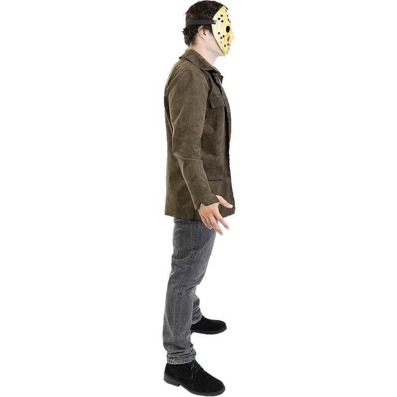 Ce costume exclusif de Tueur Jason Vendredi 13 pour hommes contient : Veste, t-shirt, masque | Ce déguisement d'homme imitant bourreau iconique de Crystal Lake est disponible en 4 tailles différentes et veuillez noter que cela n'est pas inclus : couteau, pantalon, chaussures