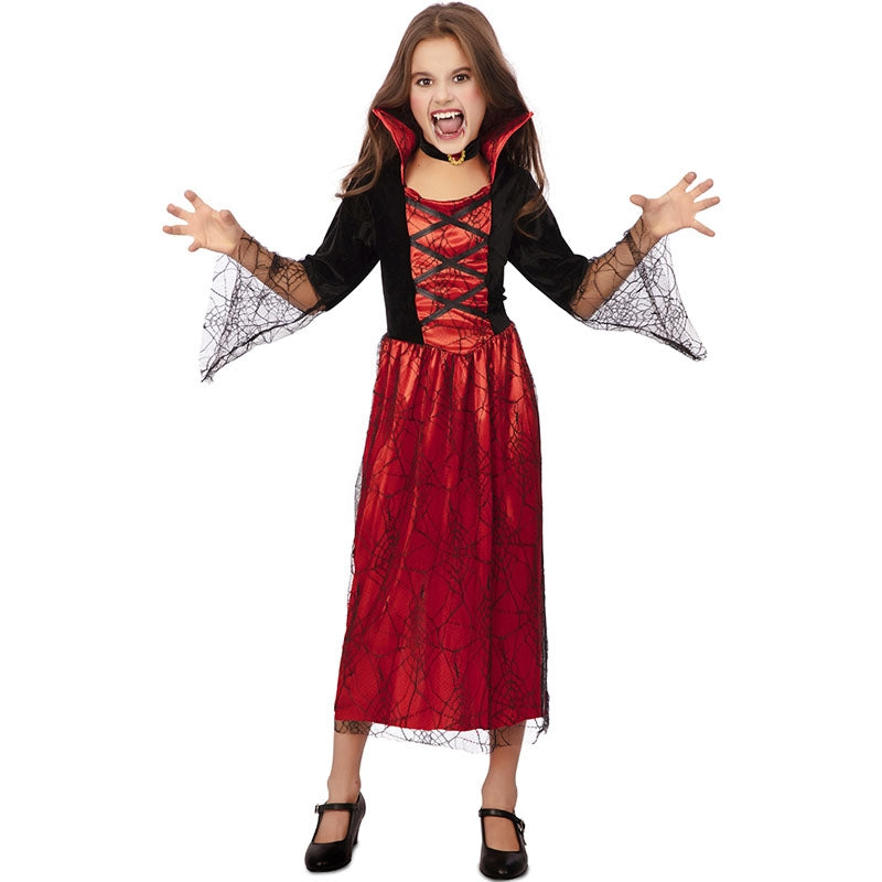 Le costume Halloween Vampira Amberlyn pour filles contient: robe et tour de cou | Cette tenue effrayante fille imitant une reine des vampires est disponible en 3 tailles différentes