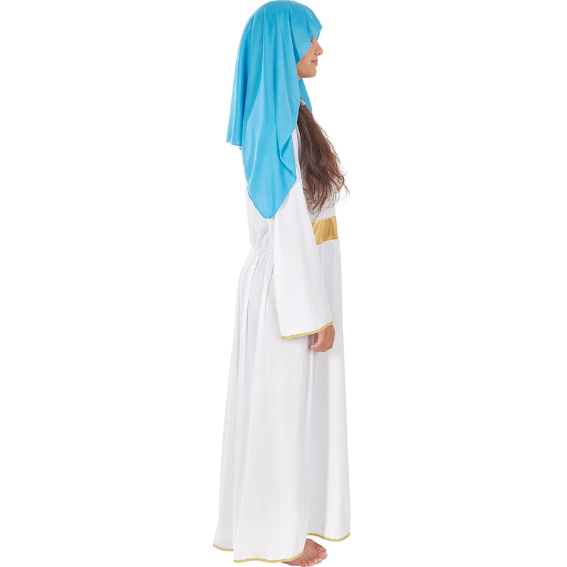 Ce costume exclusif de Vierge Marie pour femmes contient : Robe et foulard pour la tête | Ce déguisement de femme pour se transformer en Mère de l’Enfant Jésus est disponible en 3 tailles différentes