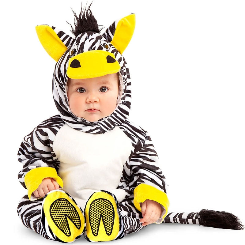 Le costume original Zebra pour bébés contient : Bonnet, bodysuit et queue | Cette tenue bébé imitant une Zebra est disponible en 2 tailles différentes