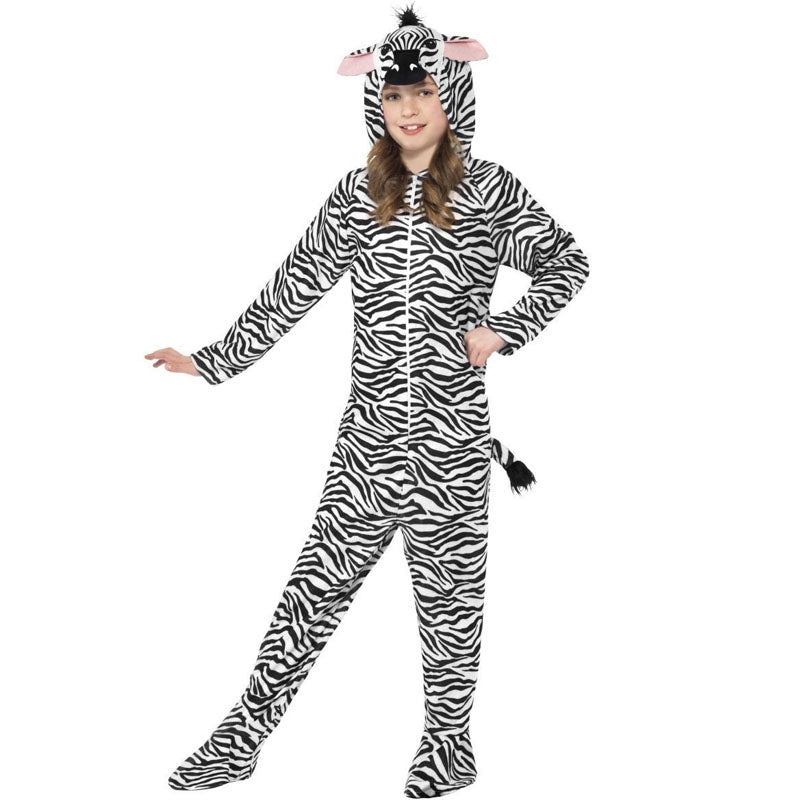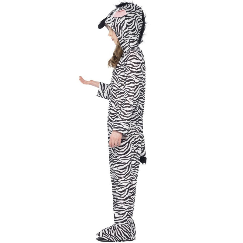 Le costume enfant imitant un zèbre contient: combinaison avec capuche | Ce déguisement zèbre garçons et filles est disponible en 3 tailles différentes