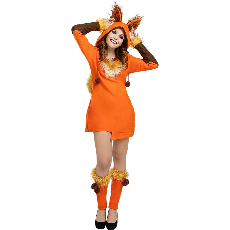 Ce costume exclusif de Zorro pour femmes contient : Robe avec capuche, queue et couvre-bottes | Ce déguisement de femme pour se transformer en créature rusée de la forêt est disponible en 4 tailles différentes