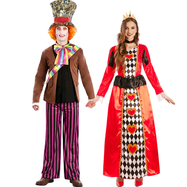 Costume de couple Chapelier Fou et Reine de Cœurs pour adulte