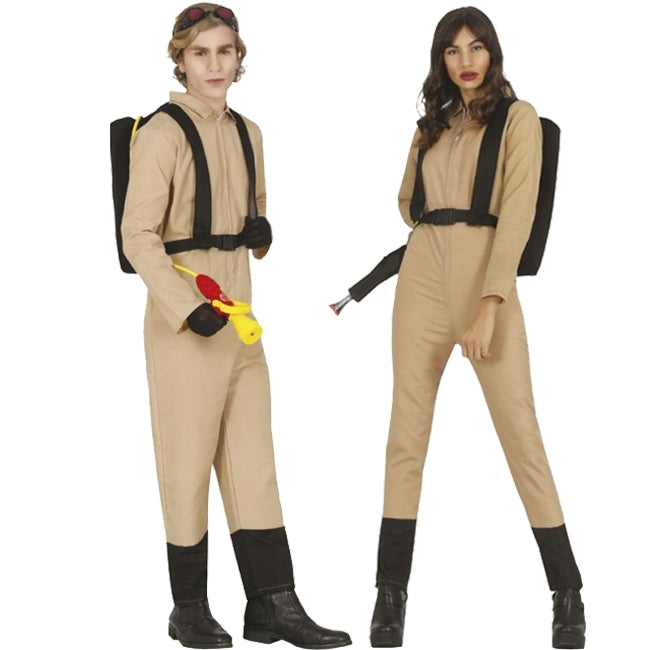 Le voyant costumes S.O.S Fantômes pas cher pour hommes contient : combinaison et sac à dos et le costume S.O.S Fantômes pas cher pour femmes contient : combinaison et sac à dos.