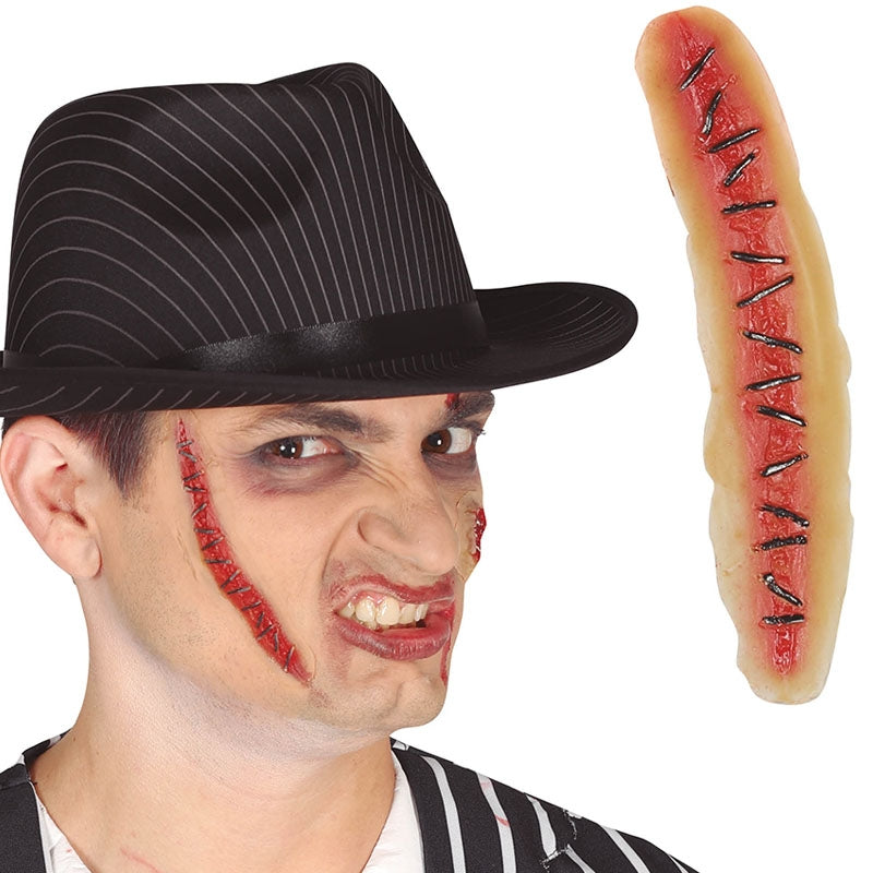 Fausse plaie en latex représentant une suture parfaite pour impressionner vos amis ajoutant du faux sang pour une touche plus réelle