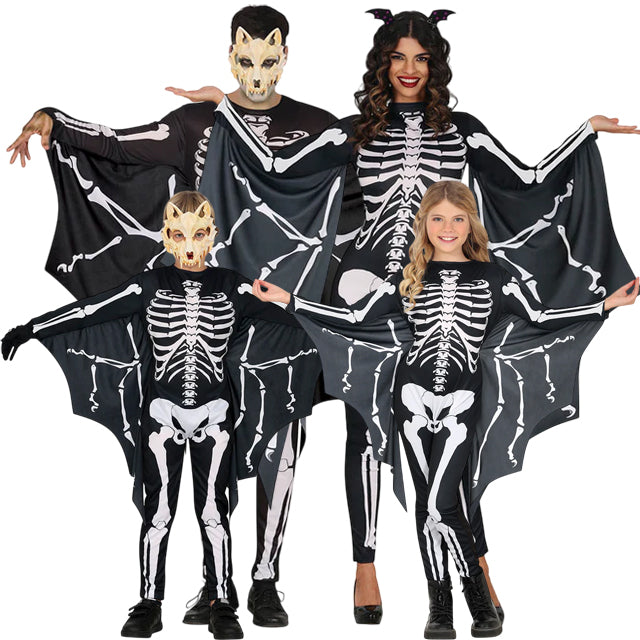 Idée fantastique pour déguiser toute votre famille en Chauves-souris Squelettes, avec des modèles assortis pour homme, femme, garçon et fille. Vous pouvez accéder au contenu de chaque déguisement plus bas dans la section « Complète votre look », où figure chaque costume appartenant individuellement à ce groupe.