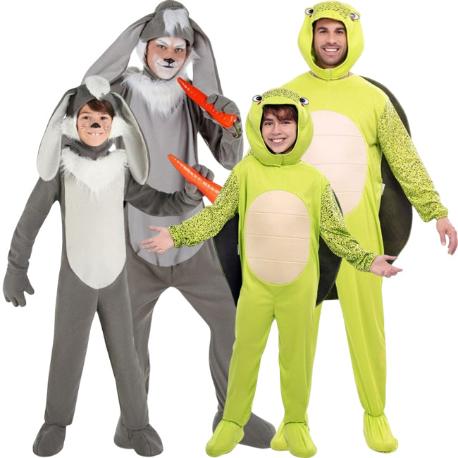 Idée fantastique pour déguiser toute votre famille en Fable du Lièvre et de la Tortue, avec des modèles assortis pour homme, femme, garçon et fille.