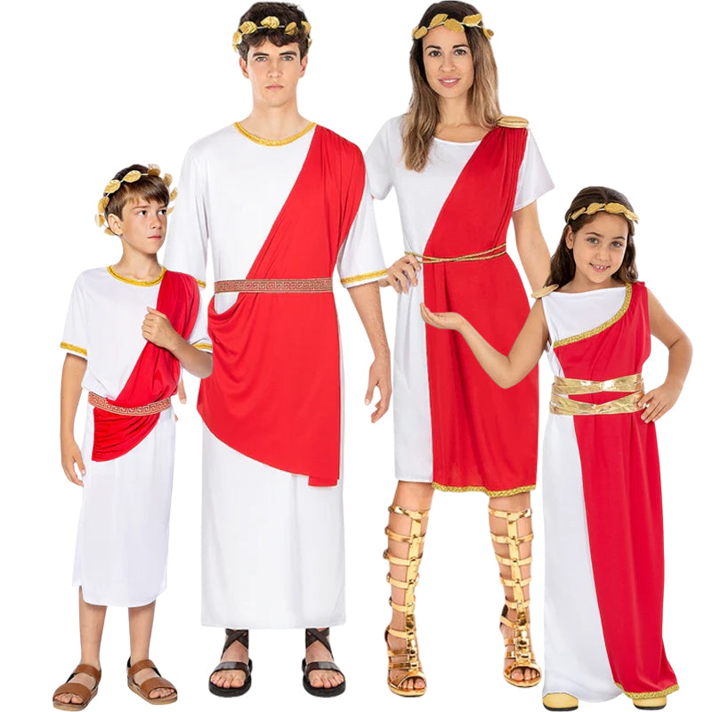 Ces déguisements romains pour familles entières sont idéals pour spectacles, Carnaval ou fêtes à thème. Une solution élégante si vous recherchez un déguisement romain pour groupe.
